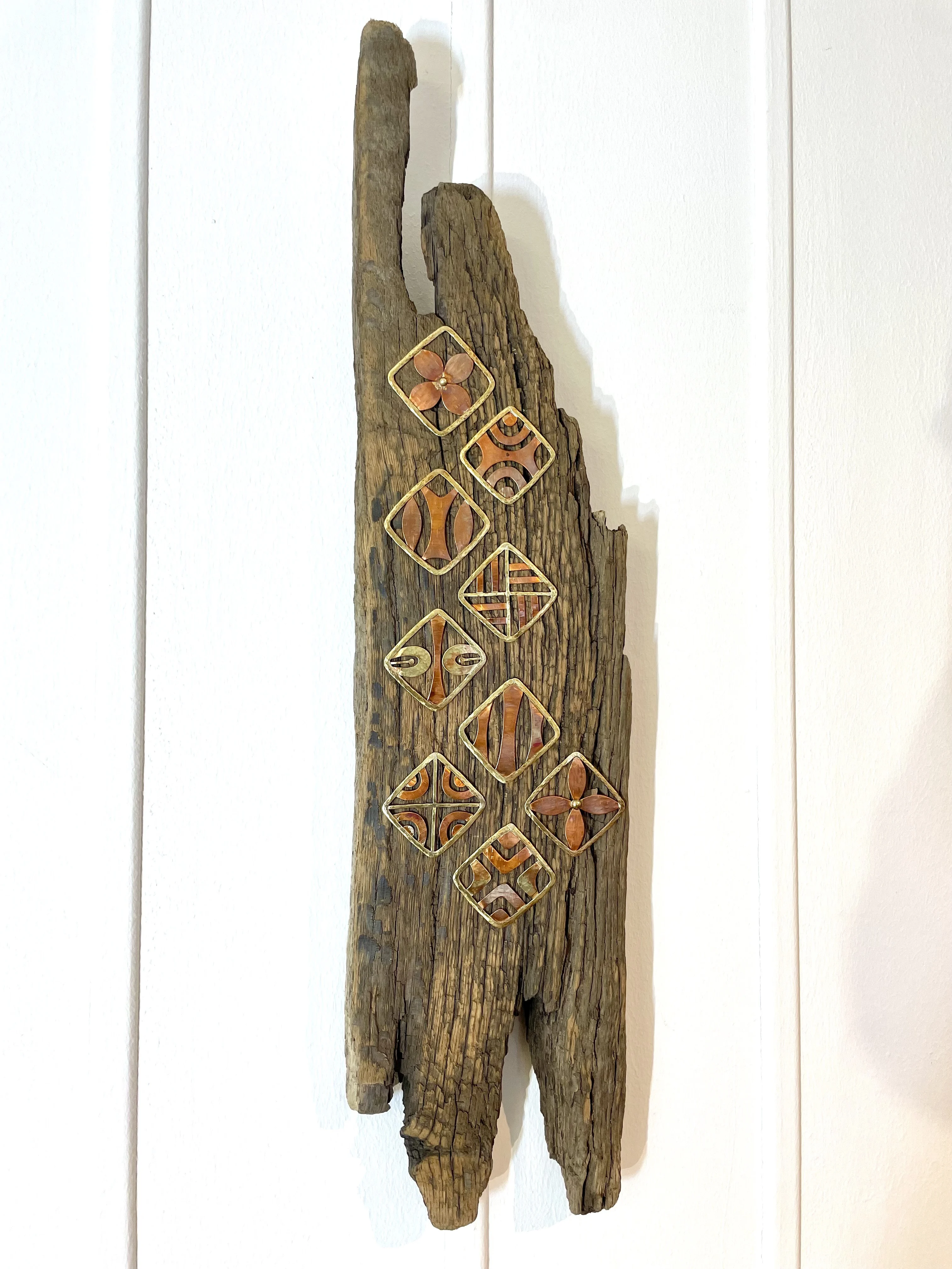 Laiton, Cuivre, Bois Flotté ( Haut: 65 cm. Larg : 15 cm)