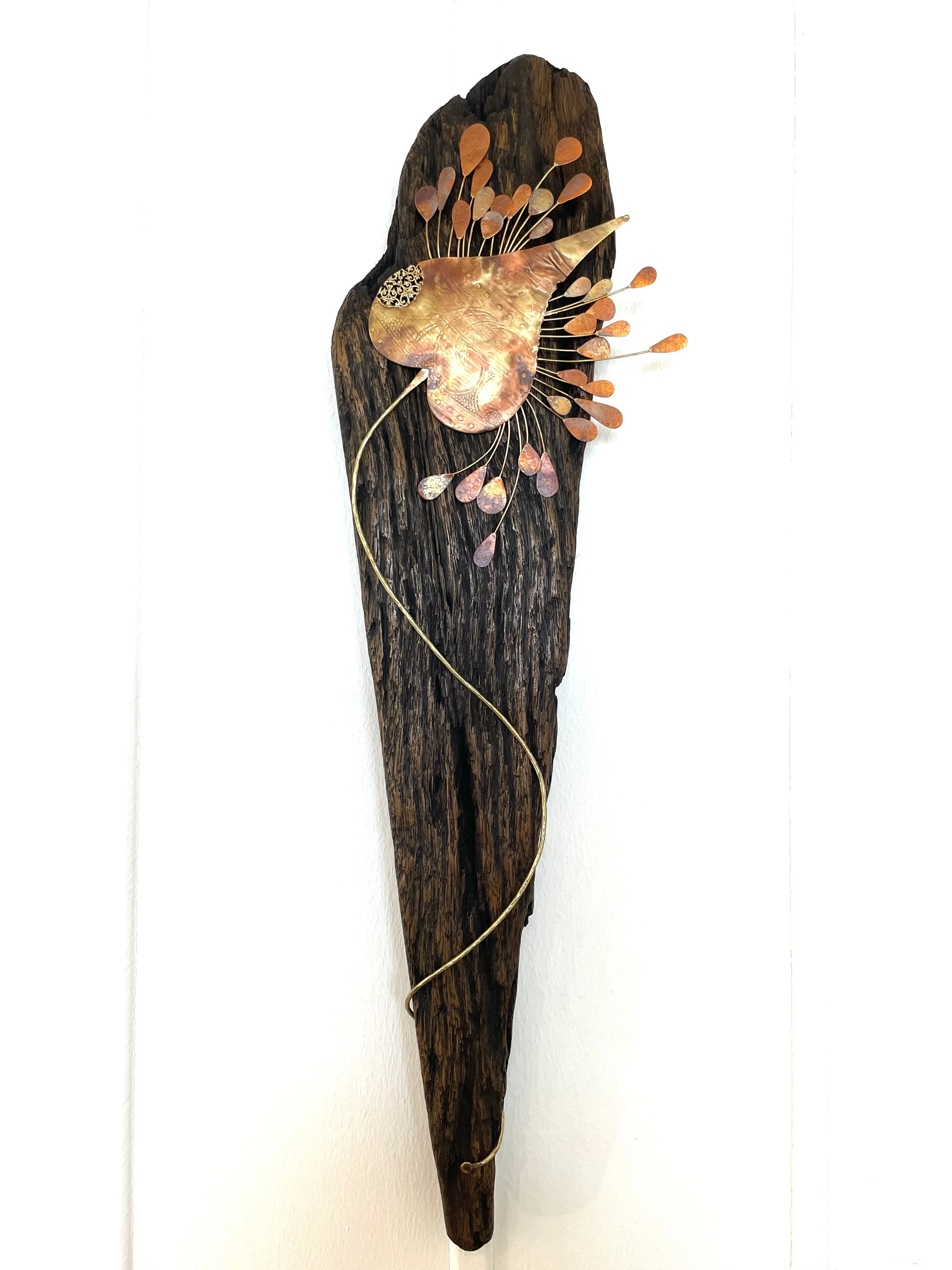 Laiton, Cuivre, Bois Flotté ( Haut: 63 cm. Larg: 20 cm)